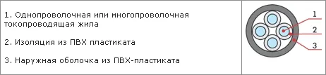 - Жилы заключены в изолирующие оболочки; для этих целей применяется негорючий и прочный ПВХ-пластикат.